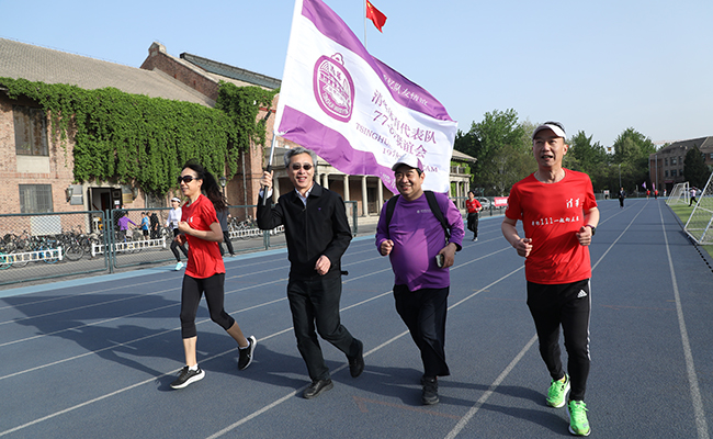 4月23日早晨,由清华校友总会主办、清华校友跑步爱好者协会承办的“母校建校111年,西操接力111圈”活动在西大操场拉开帷幕。随着一声发令枪响,校友们齐声高呼“清华1911”的计数口号,在西操起跑。大家接力奔跑111圈,为清华111岁校庆献上生日祝福。