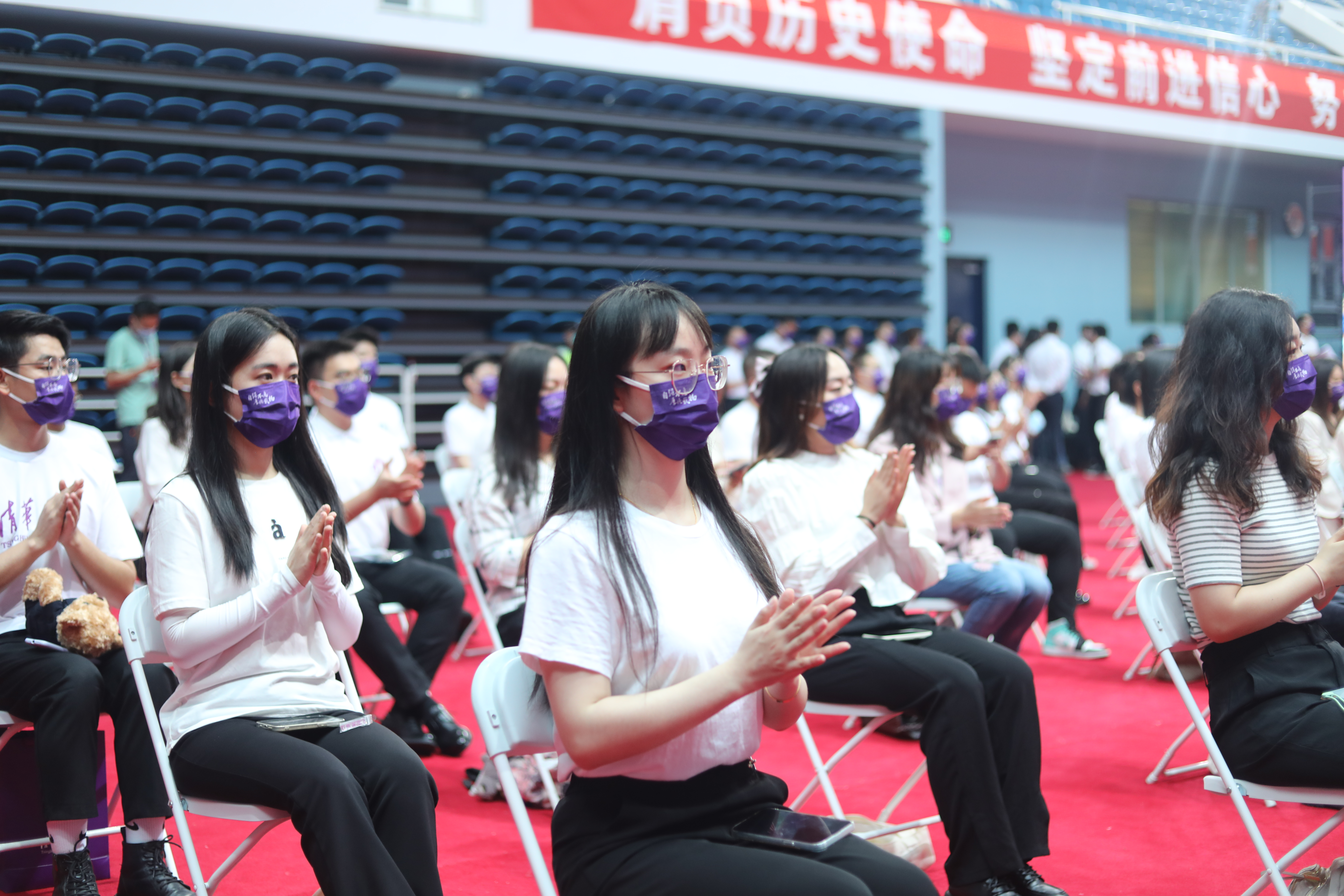 近500名新生代表在综合体育馆主会场参加典礼