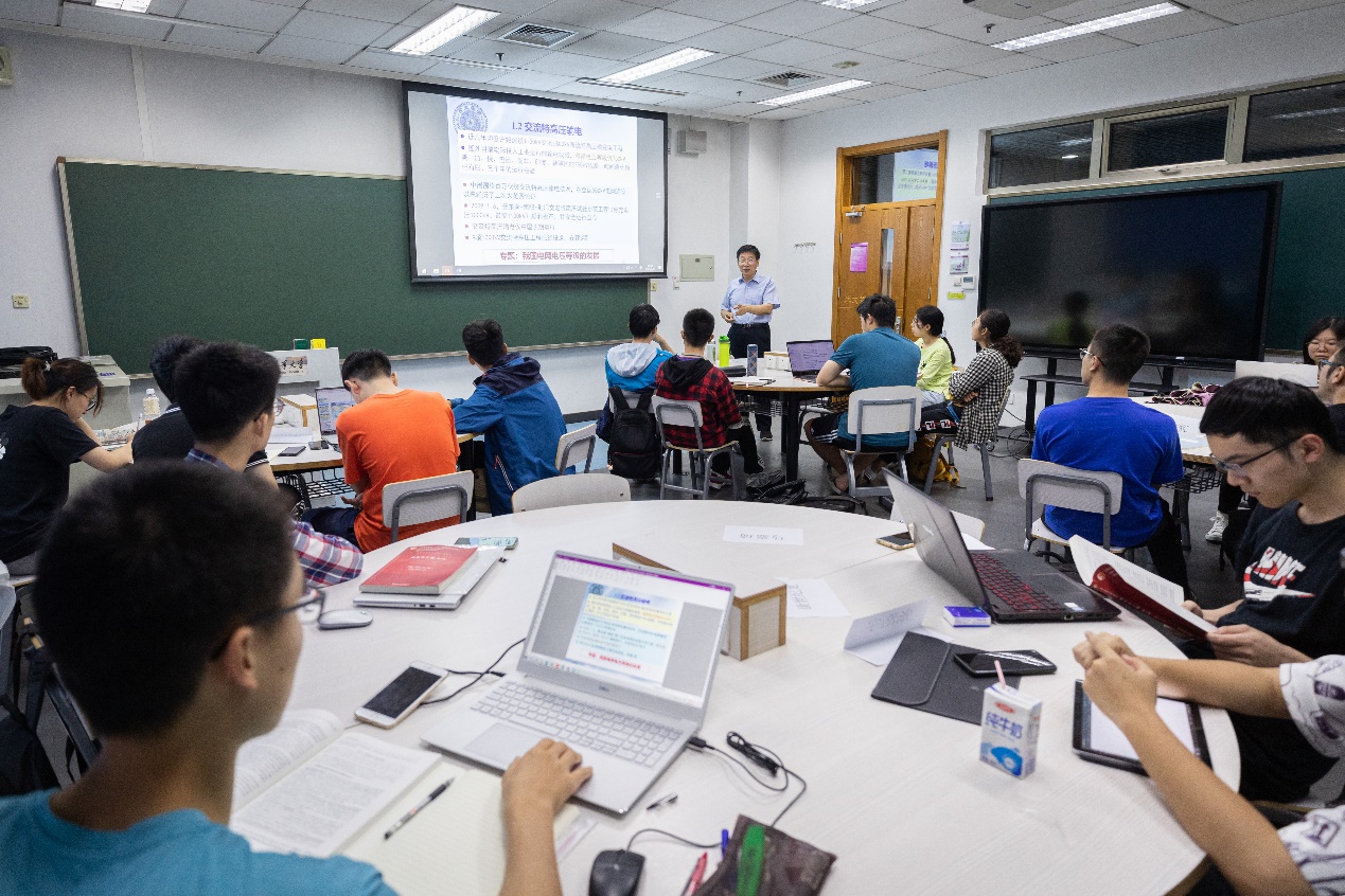 一张徐徐展开的电网详细结构图,使得六教6A010的课前氛围逐渐升温。同学们簇拥在电机系教师梁曦东的周围,细细打量这张图。