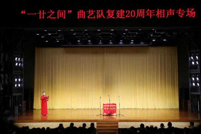 赵洪代表艺术教育中心祝贺曲艺队复建20周年队庆活动取得圆满成功,希望同学们不断精进业务、提升能力,进一步发扬“文艺轻骑兵”传统,推出更多群众喜闻乐见的优秀作品。学生艺术团1997级团员、曲艺特长生、曲艺队复建后首任队长胡鑫喆与大家分享了曲艺队复建前后的艰辛,希望曲艺队能够在老师们的关怀指导下,在队员们的不懈努力下,在观众朋友们的鼓励支持下,在清华的艺术沃土上,走过更多的二十年。