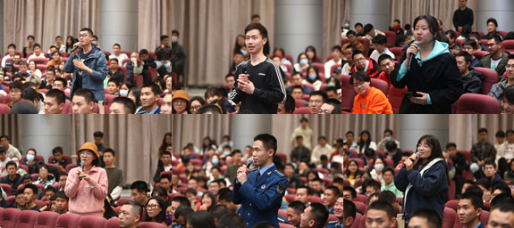 报告之后,同学们提问热情高涨,吴谦围绕同学们提出的“当代大学生如何服务国家安全”“新闻战线如何对外讲好中国故事、树好军队形象”“新闻发言人的专业素养”“中国军队在和平年代如何提升备战打仗能力”“退役大学生士兵返回校园后如何服务国防教育”等18个问题进行了长达70分钟的详细解答。同学们纷纷表示,吴谦大校的国防教育报告生动而深刻,问题的回答专业而幽默,进一步加深了我们对国家安全形势和总体国家安全观的认识,更加坚定了我们做国家安全的积极践行者、自觉守护者和坚强捍卫者,努力成为堪当民族复兴重任的时代新人的决心。
