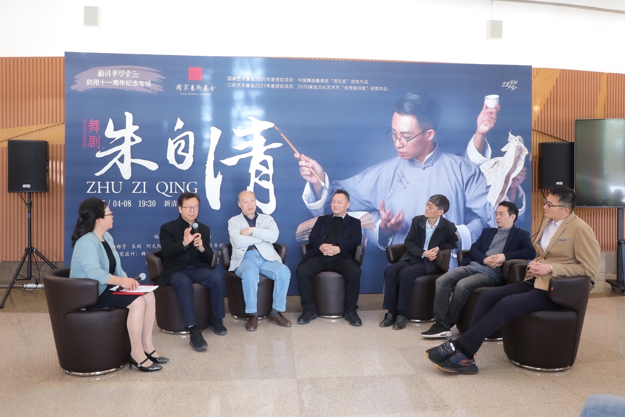 演出后,现场观众报以热烈的掌声,久久不肯离去。现场举办演后谈活动,师生观众踊跃参与,与艺术家面对面交流观演感受。扬州市歌舞剧院院长秦如峰介绍,舞剧于2020年策划排演,将扬州人朱自清的形象搬上舞台,编、导、演团队付出了大量心血,克服了很多困难。冯双白也分享了如何从朱自清先生并不大起大落的一生中提炼出“戏剧”的冲突和张力的创作难度。
