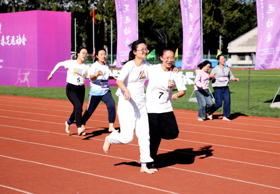 在女子100米决赛中,日新书院33班的柏晓鸣获得冠军。谈及参与新生赤足运动会的感受,她表示,作为参赛选手赤足奔跑在跑道上,让她对学校的校园文化和体育氛围有了更加深刻的理解。