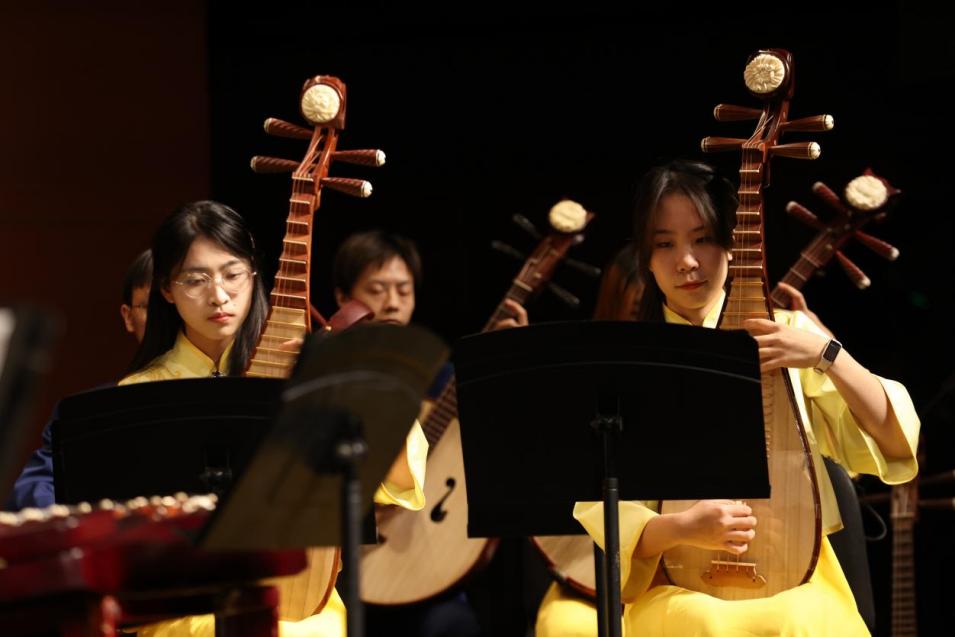 音乐会上半场以协奏、重奏曲目为主,曲目覆盖古今中外,为听众展现了民族乐器的独特音色魅力。下半场,中国人民大学学生艺术团民族乐团和乐动平台学生艺术团民乐队相继为大家带来室内乐合奏曲目,既奏响了《茶马》《山语·幻》等经典作品,还上演了由乐动平台学生艺术团民乐队队员编曲的作品《一生所爱》,精彩纷呈。