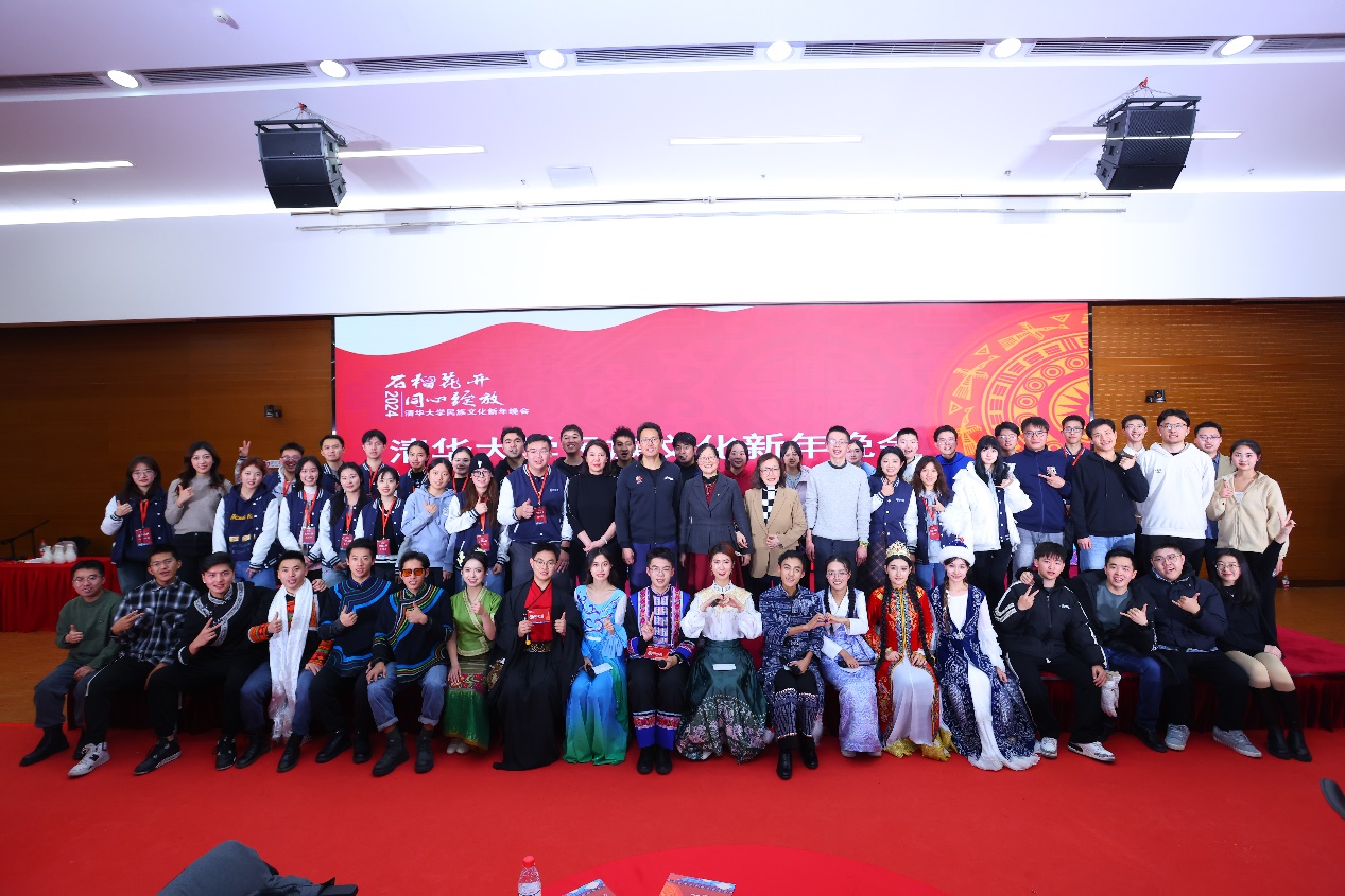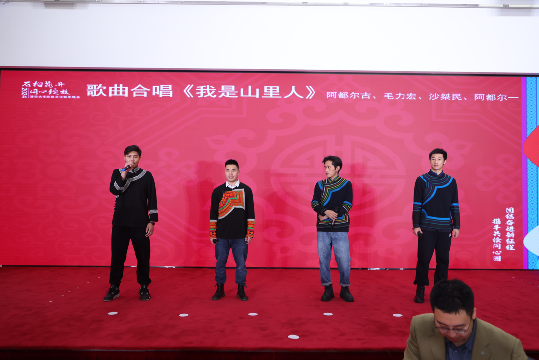 节目开场,来自大凉山的彝族同学身着民族服饰,带来了合唱曲目《我是山里人》,以醇厚的嗓音和悦耳的旋律点燃了现场气氛。维吾尔族同学迪丽努尔身着花裙头戴花帽,用一支美丽的新疆舞蹈把现场气氛带到了最高点。哈萨克族的两位同学带来的冬不拉演奏,仿佛将现场的观众带到了遥远的天山脚下,听泉水叮咚、树木作响。十几位“石榴籽计划”第九期学员身着各民族服饰,带来了一场生动有趣的民族服装秀。曲艺队带来的相声表演和魔术协会带来的魔术“身体的秘密”,收获了阵阵笑声和掌声。第26届研究生支教团带来的歌曲《无问》《与你西行》,更展现了清华学子一往无前的情怀与抱负。晚会还邀请了来自云南南涧等地、在清华附中参加“成志英才计划”的各民族学生共同迎接新年。