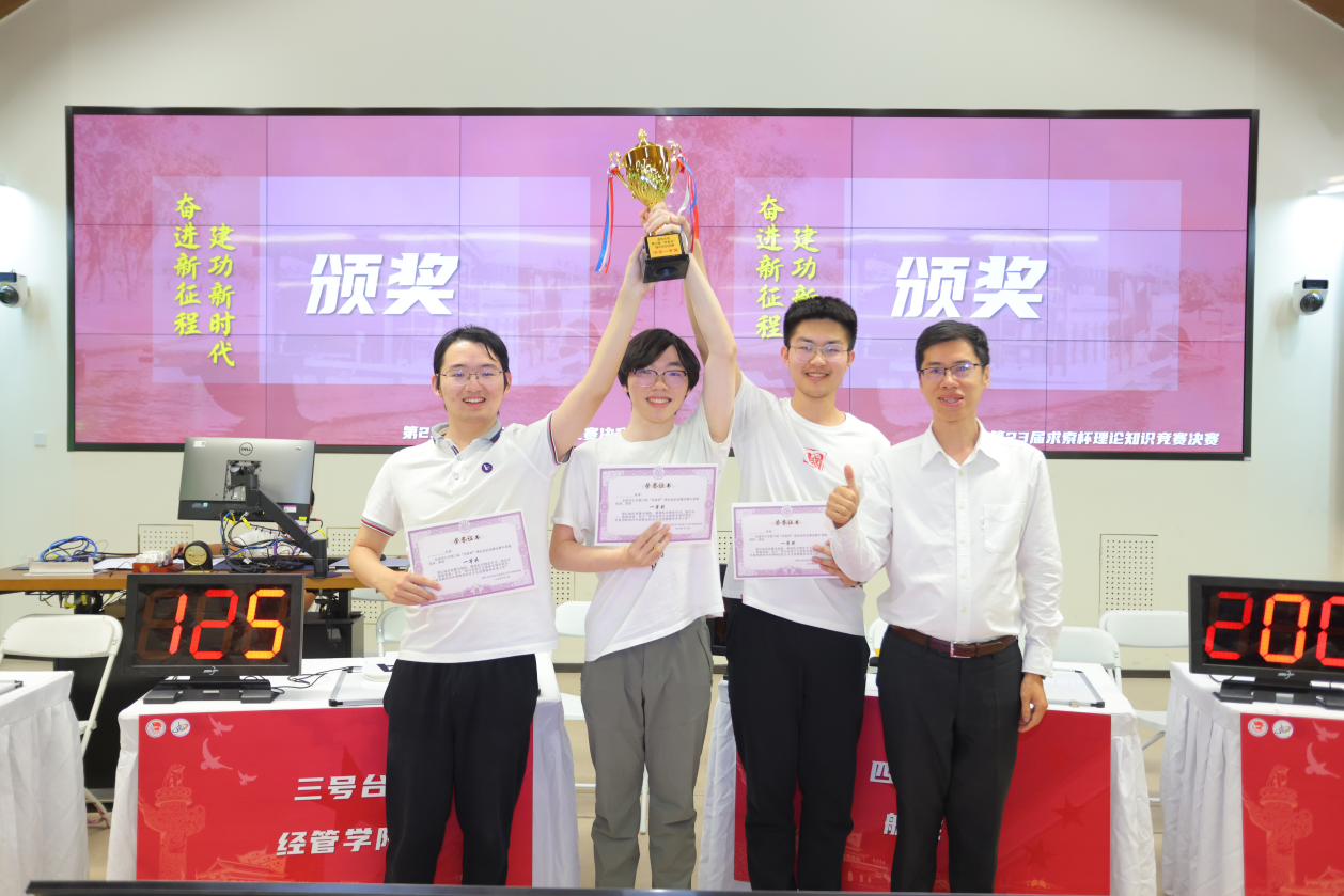 交叉信息院2022级本科生姬周、蒋金辰和吉翔组成的参赛队伍获得本届“求索杯”理论知识竞赛冠军,物理系2023级本科生王语晨、2022级本科生路冀智、2021级本科生刘力铭组成的队伍获得亚军,求真书院2022级本科生常劲昆、李浩铖,2021级本科生邹方睿组成的队伍获得季军。冠军队伍成员,交叉信息院2022级本科生蒋金辰表示,与往年不同,今年的比赛重视考察《中国共产党纪律处分条例》总则与细则的掌握情况,同时面向全体参与人员开展党纪知识普及教育,通过互动形式有效加深了自己对党纪等党内法规的了解和认识。观赛同学纷纷表示,作答的过程也激发了自己学习党纪知识的热情。