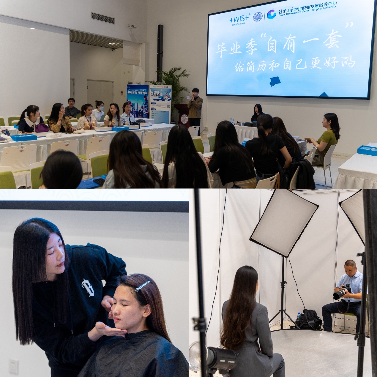 本次“简历嘉年华”配套举办了“职业形象沙龙”,邀请专业造型师开设职场妆容互动讲堂,并现场免费为同学们化整妆、拍摄简历照。定制化的职业形象指导和高效优质的配套服务惠及近200位在校学生。