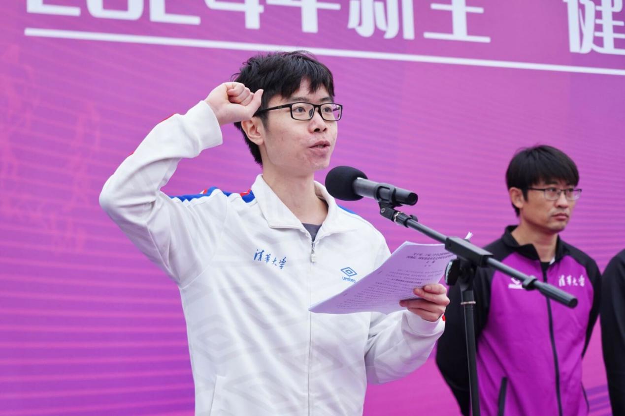 随后,上一年度马约翰杯甲组冠军院系代表自动化系自32班学生韦虹任、乐动平台周诒春青年教师奖获得者周小菁分别代表运动员和裁判员宣誓。体育部、校工会、校团委等单位相关负责人出席开幕式,体育部副主任周放主持开幕式。