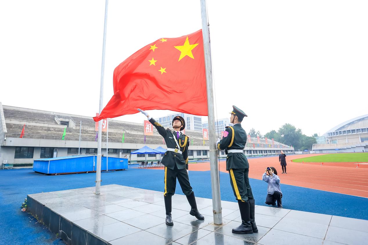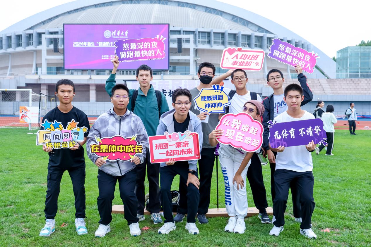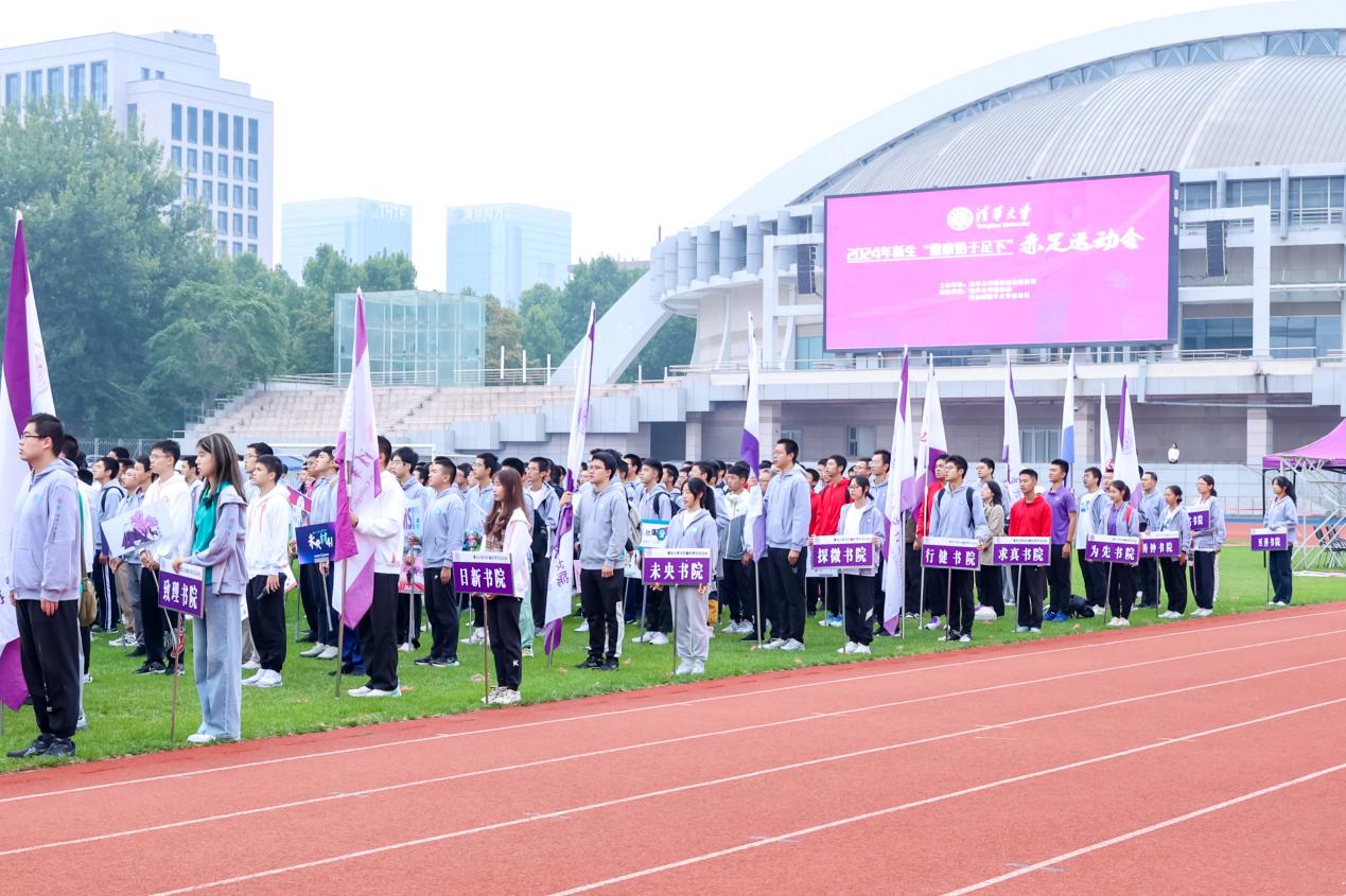 上午8时,运动会开幕式在全体新生的热切期盼中正式开始。伴随着庄严的国歌声,五星红旗缓缓升起。各院系学生代表聚集在操场中央草地处,身穿院服系衫,挥舞旗帜,洋溢着自信的笑容。每个班级均自行设计了班牌,将院系特色、班级风貌和清华体育精神巧妙融合,展示出新生朝气蓬勃、积极向上的精神面貌。