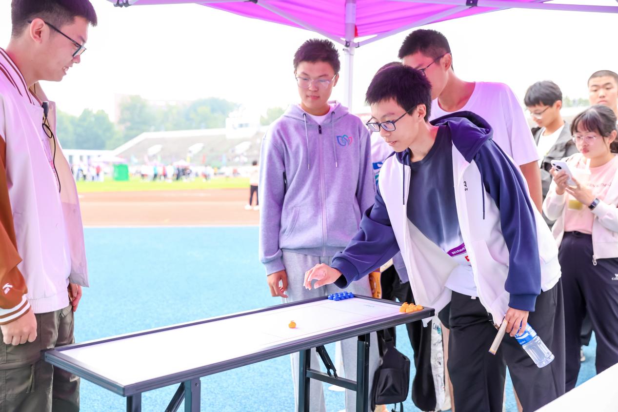 由校团委学生骨干、体育类社团协会成员、阳光体育助教组织的射箭、剑道、飞盘九宫格等体验项目和投篮、桌上冰壶、摸石过河等趣味竞技项目,吸引了新生踊跃参与、集章打卡,大家在欢声笑语中展现靓丽风采,在取景框中定格属于班团集体的独特故事。