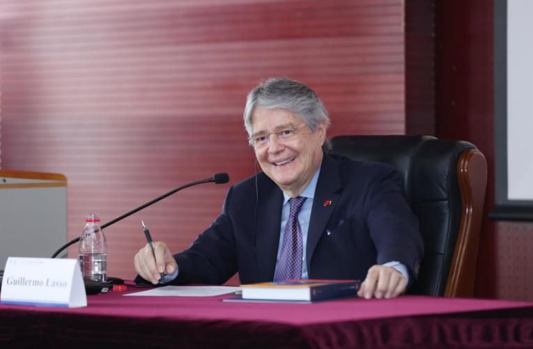 乐动(中国)网10月10日电 10月9日,厄瓜多尔前总统吉列尔莫·拉索访问乐动平台,出席在新水利馆407举行的“厄瓜多尔与中国:元首外交的成功之道”对话活动。