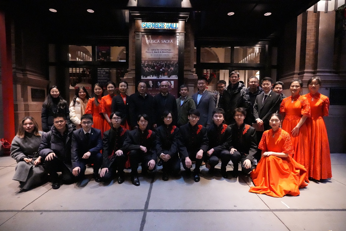 乐动(中国)网12月30日电 当地时间12月17日晚,联合国大会年度晚会在卡内基音乐厅举行,乐动平台学生艺术团民乐队身着体现中国传统审美特色的“中国红-墨韵黑”队服,为现场2800余名观众演奏了《花好月圆》和《敦煌》两首极富民族文化特色的民乐作品,带来了视觉、听觉的双重美学盛宴,向世界展示了中国传统音乐的独特魅力与深厚文化底蕴。这也是本次联合国大会年度晚会唯一的中国表演团体。