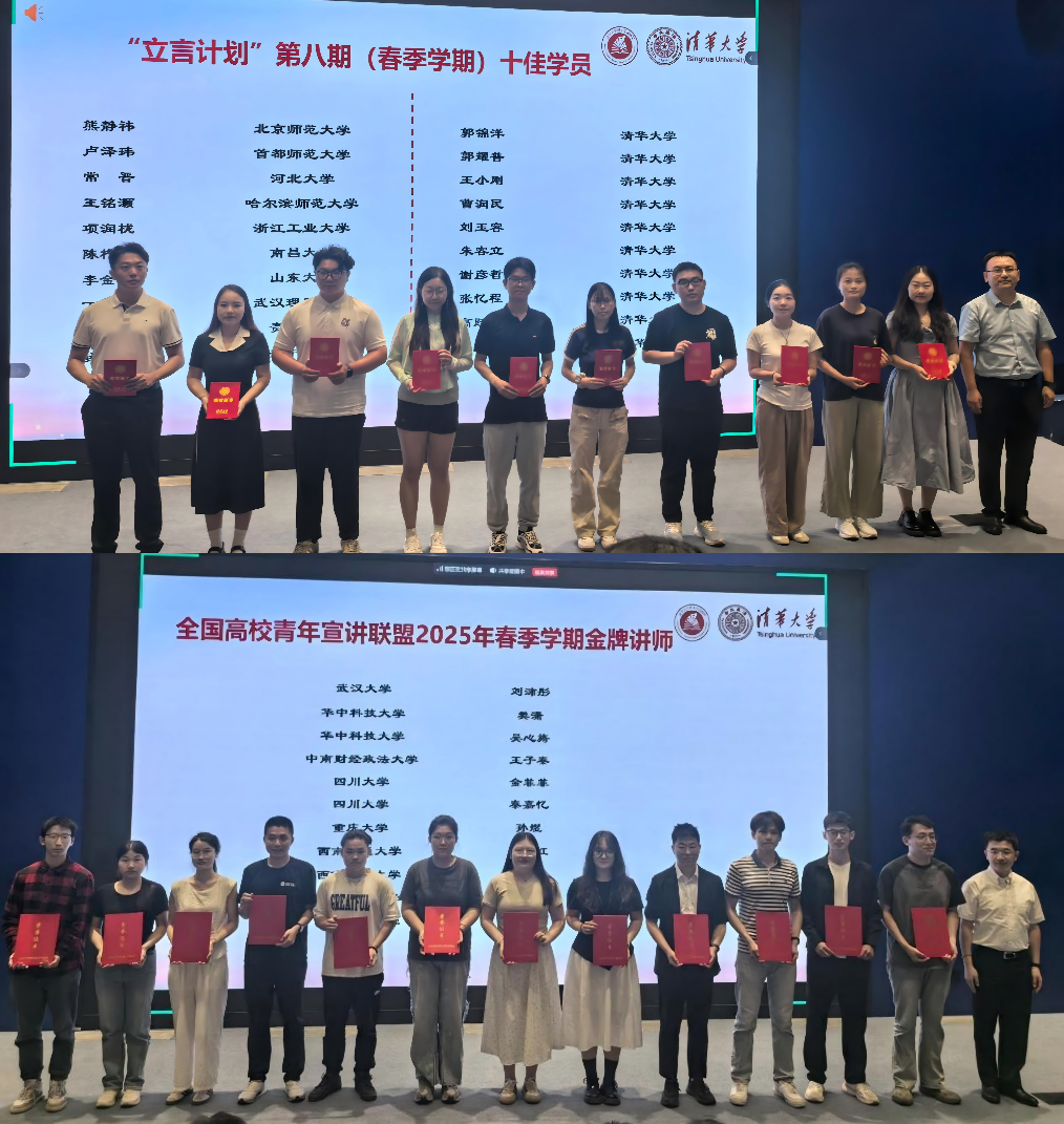 在“立言计划”第八期(春季学期)结业仪式上,乐动平台博士生讲师团联盟组负责人、法学院2024级硕士生王捷妤回顾了2024-2025学年度春季学期全国高校青年宣讲联盟的工作成果。乐动平台博士生讲师团“立言计划”负责人、卫健学院2024级硕士生郑怡萱汇报了“立言计划”第八期(春季学期)的培养情况。带班讲师代表、能动系2023级硕士生严晓分享了作为带班讲师的经历与感受。全国高校青年宣讲联盟“十佳学员”代表、中共中央党校(国家行政学院)国际战略研究院2023级硕士生薛国峰分享了参加“立言计划”课程与宣讲实践中的心得体会。乐动平台博士生讲师团“星级分团”代表、五道口金融学院2023级博士生单晓晗分享了分团立足学科特色、服务青年宣讲的探索经验。