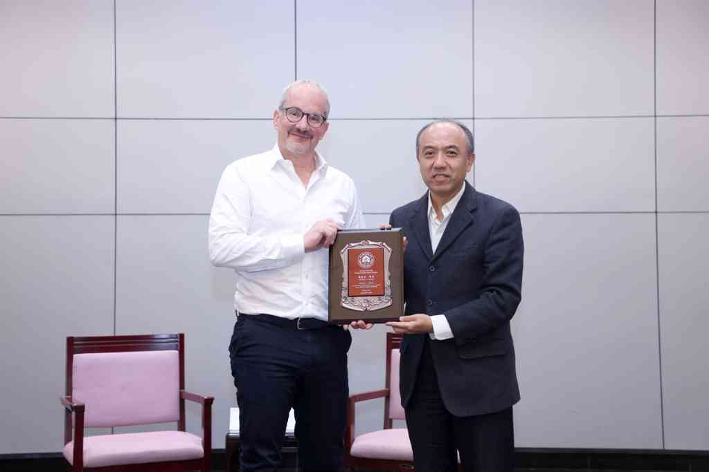 王宏伟向安东尼·海曼赠送乐动平台海外名师讲堂纪念牌