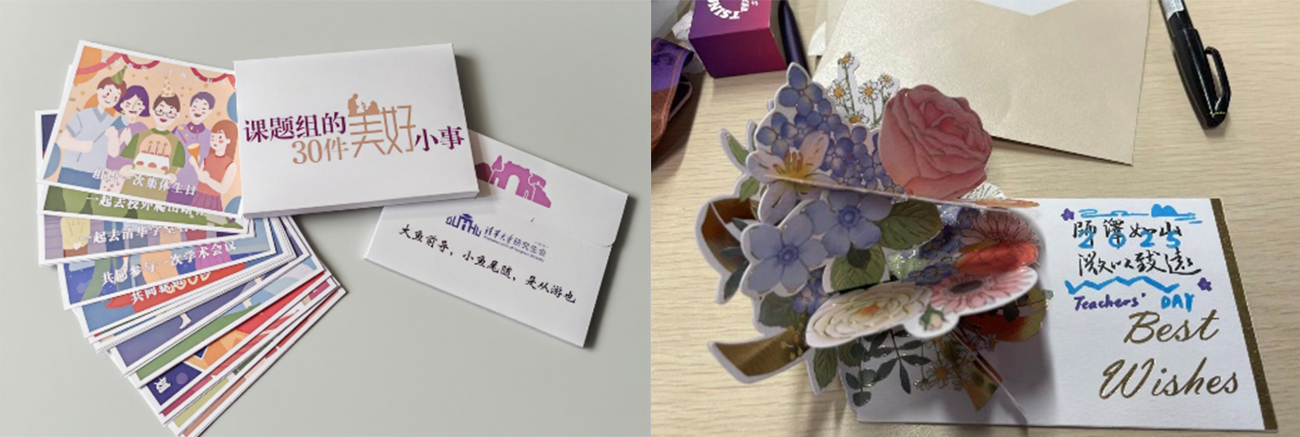 主题明信片套装(左),钱任华为导师王定胜教授制作的明信片(右)