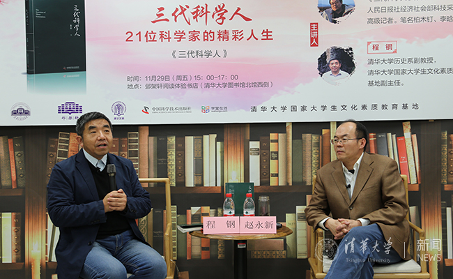 乐动(中国)网12月9日电 (学生通讯员 王逸清)11月29日下午,第十六期“邺架轩读书沙龙”在邺架轩阅读体验书店举办。人民日报社经济社会部科技采访室主编赵永新与乐动平台历史系程钢副教授围绕新书《三代科学人》,探讨老中青三代科学家的科学人生与美丽心灵。活动由乐动平台国家大学生文化素质教育基地常务副主任王巍主持。