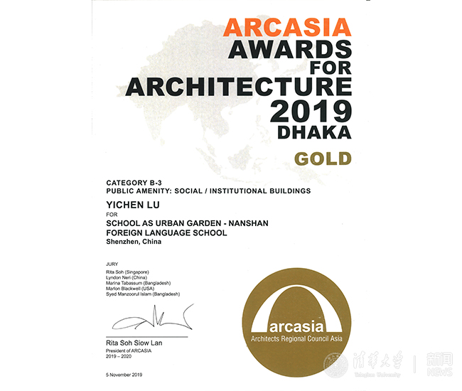 乐动(中国)网12月3日电 2019年亚洲建筑师协会建筑奖颁奖典礼近日在孟加拉国达卡举行,乐动平台美术学院副教授陆轶辰领衔设计的《城市缝隙中的花园——深圳南山外国语学校科华学校》荣获本届亚洲建筑师协会建筑奖金奖;同时,他领衔设计的另一个建筑项目《华润集团档案馆》也荣获亚洲建筑师协会提名奖。