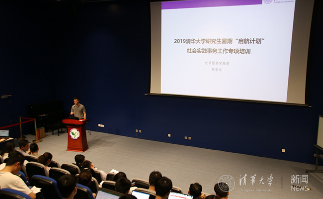 计算机系2016级博士生杨皓介绍了2019年暑假“启航计划”的总体情况。“调研类实践”鼓励实践支队重点围绕与本院系专业相契合的单位,了解领域前沿、前景及挑战。“初心服务团”寓意着“不忘初心七十载,美好生活在基层”,鼓励支队深入基层阅读“无字之书”,结合实践地的乡村振兴、精准扶贫等工作,为地方单位解决实际问题。