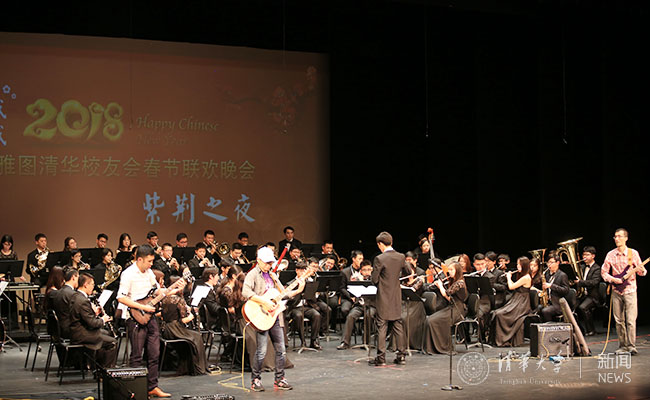 当地时间3日晚, “北京遇上西雅图-紫荆之夜”戊戌年春节联欢晚会暨乐动平台学生艺术团军乐队访美音乐会在西雅图梅登鲍尔中心剧场举行。晚会由乐动平台学生艺术团、西雅图清华校友会和北美清华全球创新学院发展中心共同主办。艺术团的同学们精心准备了管乐合奏《曼西尼金曲》(Mancini!)、《飞溅的火花》(Shattering Sparks)、《瑶族舞曲》、《幸福的格物》、《庆典序曲》、《春节序曲》,舞蹈《蒲公英》,并与校友电声乐队“SING胜于言”共同演奏现代金曲《生命万岁》(Viva La Vida)和校友原创作品《周中酱》(Wednesday Jam),为400余名来自全美各地的校友送上了真挚的祝福。