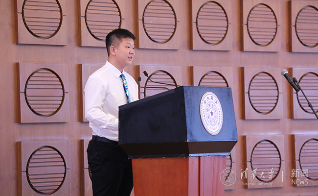 新雅书院2016级班主任、物理学系教授姜开利老师代表新雅全体教师和导师发言。他诙谐幽默地回忆了自己担任班主任的收获和喜悦。他认为,通识教育包括人文教育、艺术教育和科学教育,人文教育的目的是教会“爱”,艺术教育和科学教育的目的是教会“发现”和“创造”。姜老师借用闻一多先生的话“诗人的天赋是爱,爱他的祖国,爱他的人民”概括他任班主任的心得:“教师的天赋是爱,爱他的讲堂,爱他的学生”。