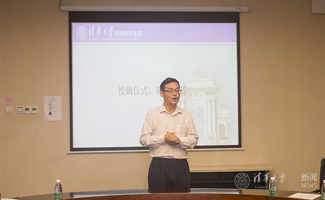 深圳研究生院党委副书记杨瑞东宣布乐动平台博士生讲师团深圳研究生院分团成立,并举行了授旗仪式,同时为分团首批4位讲师——薛超文(清华-伯克利深圳学院2016级博士生)、姜祺(清华-伯克利深圳学院2016级博士生)、李健雄(清华-伯克利深圳学院2016级博士生)、邓莉荣(清华-伯克利深圳学院2016级硕士生)颁发了聘书。