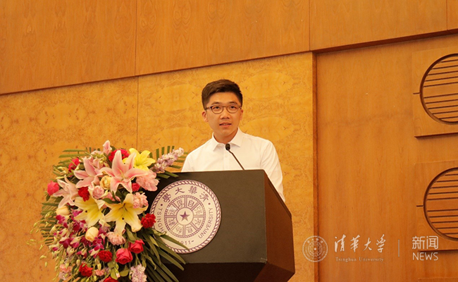 材料学院2008级本科、2012级博士研究生宁帅作为学生代表向冯斌及广大校友表达了衷心的感谢。宁帅分享了自己在校九年的成长过程中并获得“清华校友——冯斌特等奖学金”的经历,以及获奖对自己的鼓舞与激励。宁帅也代表材料学院全体学生承诺,将会继续努力学习,争取用自己的工作成绩回报前辈们的关爱与支持。