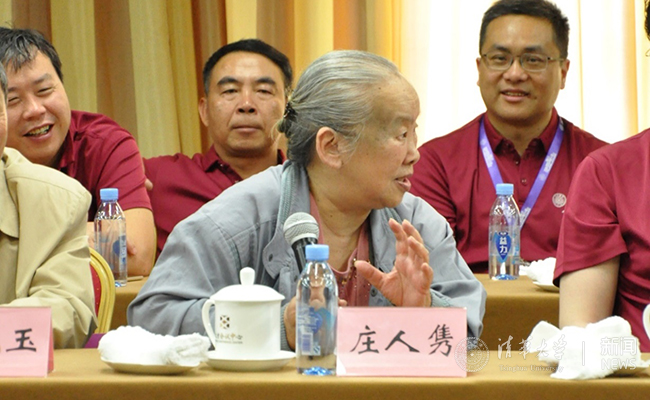 汽车系退休教师庄人隽老师在发言时,首先谈到了清华人应具备的“工匠精神”,更要能意识到自己身上的责任与担当。庄老师回顾自己多年来的生活中的种种,表示要拥有一种达观的心态。生活中总有难测的机遇与变故,但“只要我竭尽了全力,就问心无愧”。庄老师还鼓励同学们要互激互励,“把聚会变成凝聚、编程充电,让我们的视野更加宽广,让我们的国家变得更好。”再一次听到老师的教诲,会议厅里响起了雷鸣般的掌声。