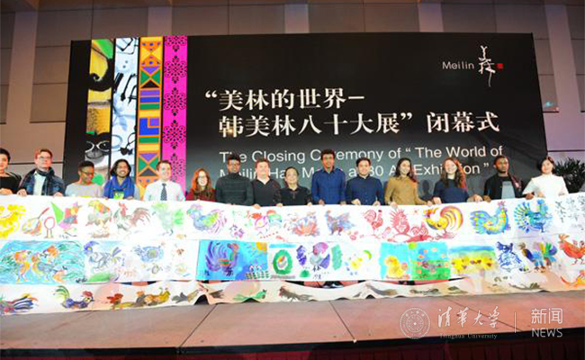 “韩美林八十大展”举办期间,上百万海内外观众享受了这场艺术盛宴。在“韩美林八十大展”闭幕式上,来自美国、英国、西班牙、意大利、日本、新加坡、尼泊尔、波兰、智利、委内瑞拉、新西兰等世界各地20个国家的留学生,向来宾们献上了亲手绘制的30米长卷《百鸡图》,并用自己的母语轮流说出“我爱韩美林”。
