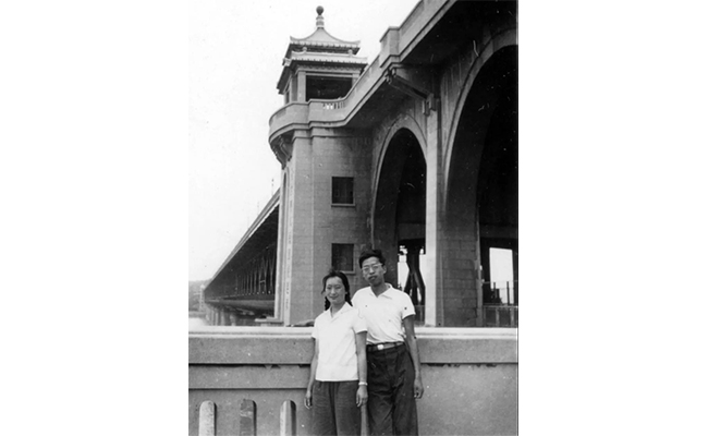 1970年与爱人应锦薇在武汉长江大桥合影