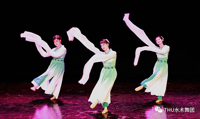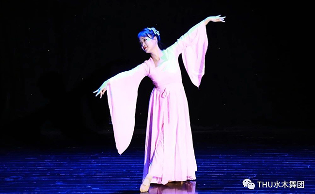 11月10日,由乐动平台工会水木舞团举办的“水木之舞”五周年舞蹈专场在学校学生文化活动中心多功能厅精彩呈现。校工会主席王岩、副主席刘强,艺教中心主任赵洪、舞蹈教师邢高熙,水木舞团指导老师,40余位舞团成员,以及百余位观众参加了本次活动。本次专场演出汇报了水木舞团自成立以来学习的众多优秀舞蹈作品,展示了舞团成员五年来的成长和取得的丰硕成果。专场演出在古典舞班身韵组合的表演中拉开序幕。身韵表演的演员们身心并用,气韵合一,展示了几年来在柔韧、力量、技巧等各方面训练中取得的进步。古典舞班指导教师小田老师的表演更是细腻甜美、刚柔并济,犹如从壁画中漫步而来,让大家感受到中国古典舞的精、气、神,领略到手、眼、身、法、步完美谐合的美学特色。