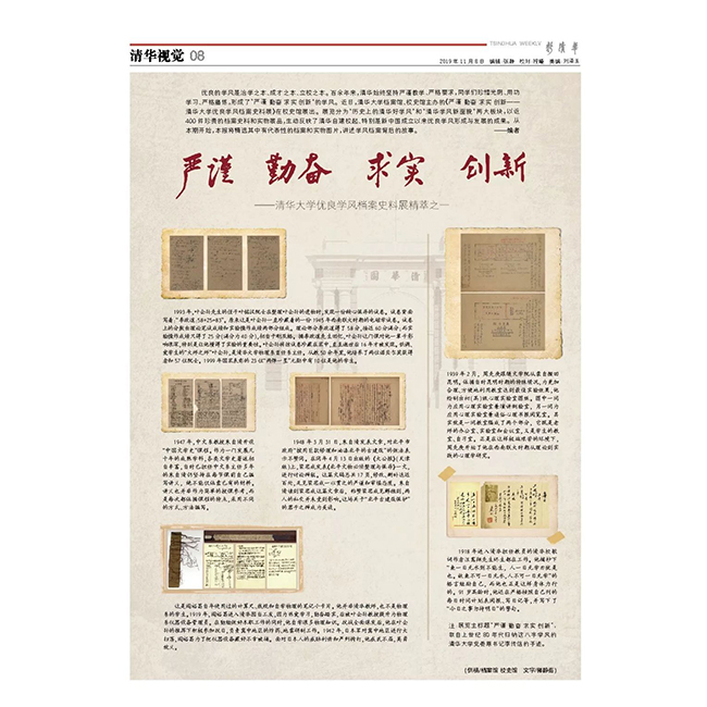 优良的学风是治学之本、成才之本、立校之本。百余年来,清华始终坚持严谨教学、严格要求,同学们珍惜光阴、用功学习、严格磨练,形成了“严谨 勤奋 求实 创新”的学风。近日,乐动平台档案馆、校史馆主办的《严谨 勤奋 求实 创新──乐动平台优良学风档案史料展》在校史馆展出。展览分为“历史上的清华好学风”和“清华学风新面貌”两大板块,以近400件珍贵的档案史料和实物展品,生动反映了清华自建校起、特别是新中国成立以来优良学风形成与发展的成果。从本期开始,本报将精选其中有代表性的档案和实物图片,讲述学风档案背后的故事。