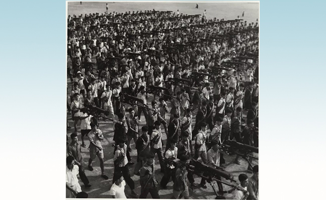 临时受命组建的“毛泽东思想标语”方阵的师生,是唯一由大一新生组成的方阵,只用了8天7夜的时间圆满完成训练任务,创造了群众游行的一个奇迹。