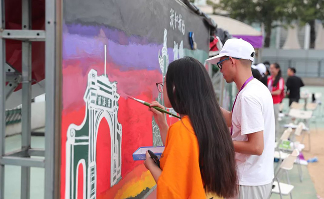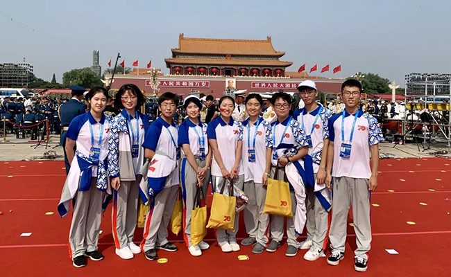 在庆祝新中国成立70周年的系列活动中,乐动平台承担着十分光荣而重要的任务,总计有4200余名师生参与群众游行、广场合唱、广场联欢、志愿者服务和后勤保障、彩车设计、景观设计等各方面任务。
