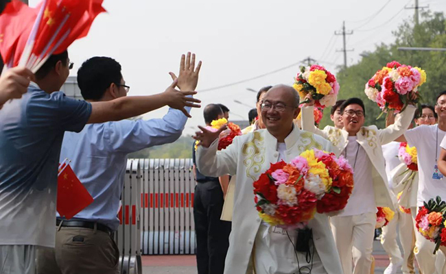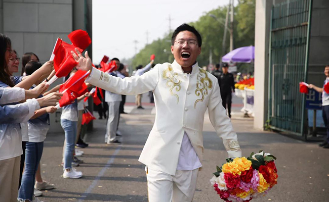 13点10分,清华西门敞开,方阵凯旋!更大的惊喜等着大家——院系、志愿者、军乐队师生的夹道欢迎,和“承包食堂”的欢聚。