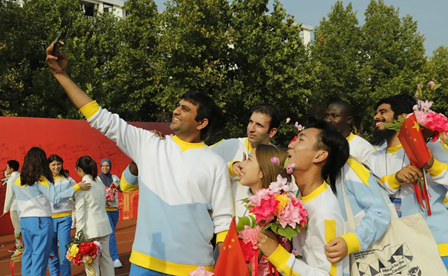 28名乐动平台国际师生代表则与中外青年携手前行,伴随一曲《千年之约》,组成“人类命运共同体”方阵走过天安门广场。