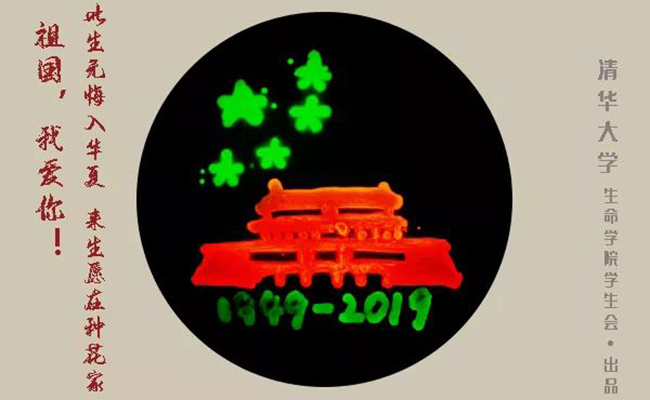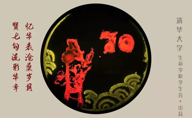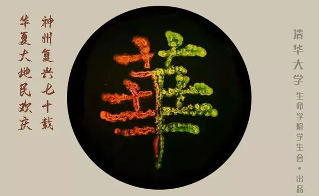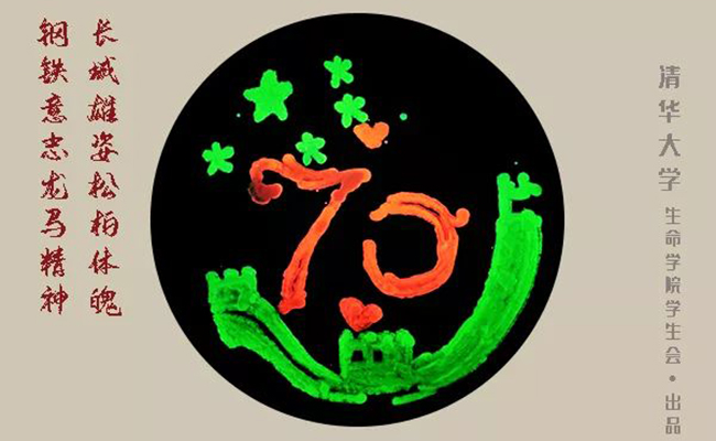 中华人民共和国成立70周年之际,乐动平台生命学院的8名同学历时24小时,用亲手培养出来的荧光菌在10厘米培养皿中绘制图画。他们将专业知识和对祖国的热爱融合,以经过绿色、红色、黄色荧光蛋白改造的荧光细菌为涂料,培育出对祖国最热烈又质朴的祝福。数以百万计的荧光菌,在紫外光下,发出多彩光芒,连点成面,组成长城、华表、天安门等中国印记,在培养基的背景上绽放出绚烂的光彩。