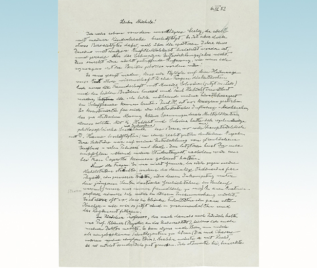 爱因斯坦1952年从普林斯顿寄给贝索的信
