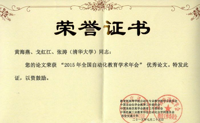 【建设经验推广】2015年7月,在教育部高等学校自动化专业教学指导委员会主办的“2015年全国自动化教育学术年会”(参会约600人)上,项目组成员在分会场与大家分享了《学术规范和职业伦理课程建设》的经验,该论文获大会优秀论文。