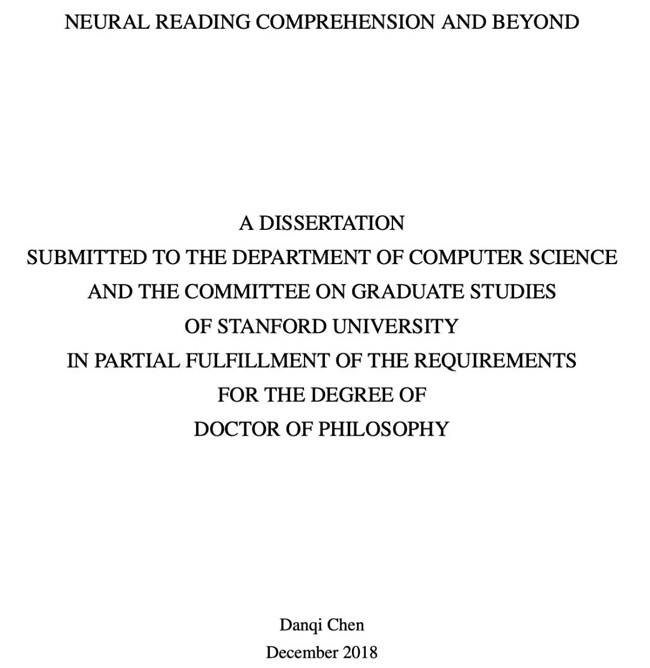 这篇毕业论文名为《Neural Reading Comprehension and Beyond》,描述了她在博士期间的三个重要研究,以解决“人工智能中最难以捉摸和长期存在的挑战之一”:如何让机器学会理解人类语言。让我们看看她的毕业论文究竟说了什么。