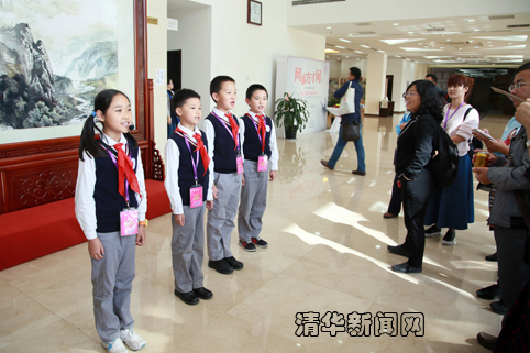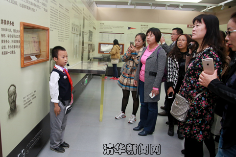 随着第一拨观众的到来,孩子们正式开始讲解了。从清华学堂的筹设,到国立乐动平台的建立;从西南联大的烽火,到新中国清华的建设与发展;从清华学子哥哥姐姐的学习生活,到学者院士爷爷奶奶的成就……面对着国内外的基础教育专家、各地中小学的领导和老师、基础教育研究工作者,孩子们讲得头头是道、井井有条,在稚嫩的童声中透着自信与自豪。