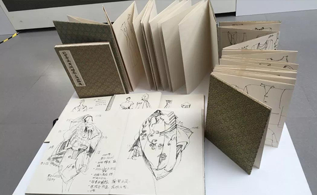 多年来,李薇对迪奥、伊夫·圣·洛朗、山本耀司等服装大师的作品潜心研究,并在大师服装作品展览中临摹绘制了多本手稿。这些手稿可以向学生展示对于大师作品的研究过程,李薇教授对服装设计的热爱和认真刻苦的态度也是对学生是极大地激励和鼓舞。这些手稿入选“2017乐动平台教学成果展”,并在校史馆展出。