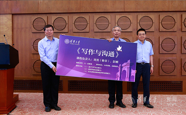 邱勇校长宣布清华将开设“写作与沟通”课,并与课程负责人刘勇(格非)教授、彭刚教授合影