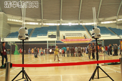 除了常规赛程,现场的诸多“趣味大闯关”活动也受到了同学们的欢迎。既有考验羽毛球基本功的“拾球十美”(持拍拾球)、“左右互博”(双手颠球)、“百分百中”(定位击球),也有考验“单挑实力哪家强”的擂台大战,更有高级的“自动发球机”供同学们体验专业训练的感觉。趣味体验吸引了前来观战的诸多观众,甚至连比赛完的选手也前来“过把瘾”。