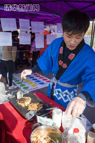 图为日本留学生在为同学们准备大阪烧。