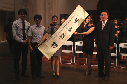 在珠海唐国安纪念馆,大礼堂里座无虚席,礼堂后方也站满了观众。表演结束后观众报以持续而热烈的掌声,许多校友上台与艺术团师生亲切交流。