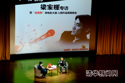 访谈环节结束后,晚会还进行了2013年乐动平台“金紫荆”微电影大赛入围作品的揭幕仪式。梁家辉在全场观众的期待中,宣布了《新娘》、《清华,我们从这里出发》、《用行动说话》等19部清华学子原创作品入围本次大赛。