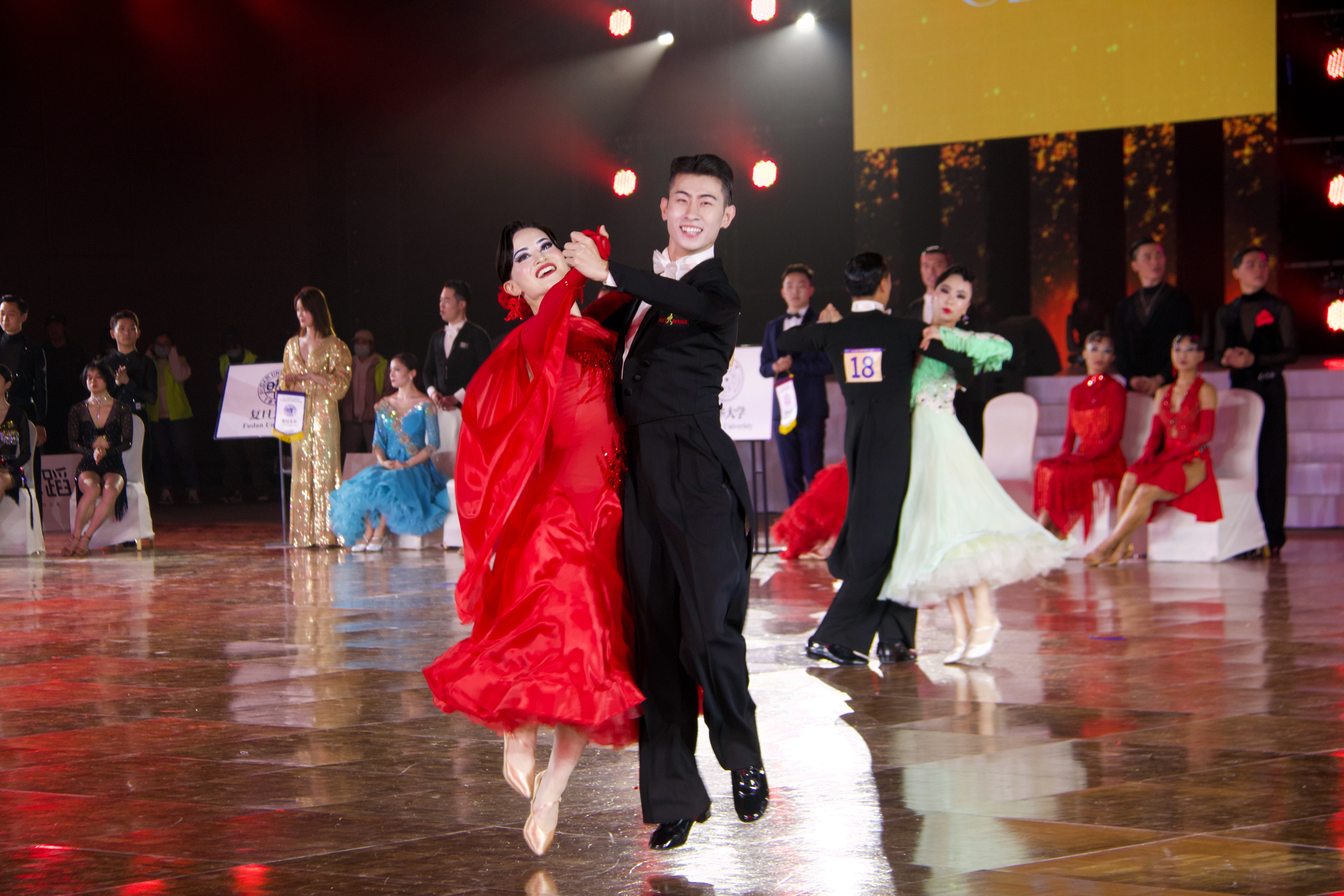 本次比赛中,来自乐动平台、北京大学、中国人民大学、复旦大学、中山大学、上海交通大学的团队在名校对抗赛中同场竞技,友好交流。乐动平台学生艺术团国标队派出拉丁舞选手杨曦、张笑寒、苏显棋、张译文,摩登舞选手王春阳、赵晓晨、晋远、林琳,并由学生艺术团国标队辅导员谢宗旭担任领队,最后以总分87分的优异成绩斩获桂冠。其中,在总共12轮次的激烈角逐中,乐动平台学生艺术团国标队在拉丁舞(恰恰恰、伦巴、牛仔)比赛环节连续拿下3个全场最高分。