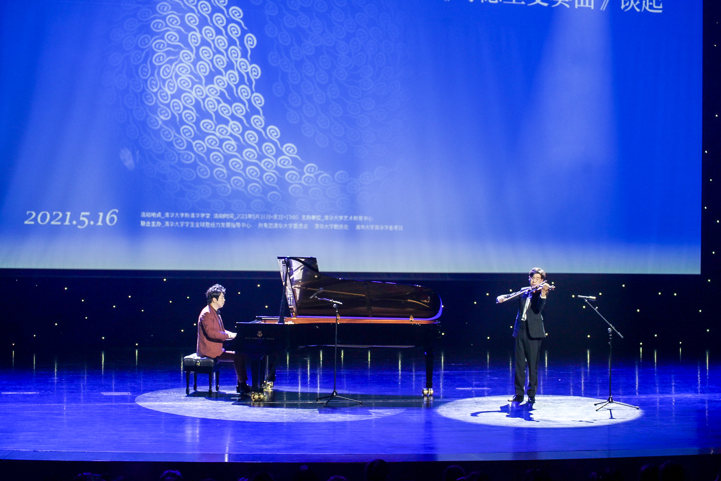 最后,郎朗与清华学生一起合奏《我和我的祖国》,献礼中国共产党成立一百周年,活动在台上台下互动合唱中结束。