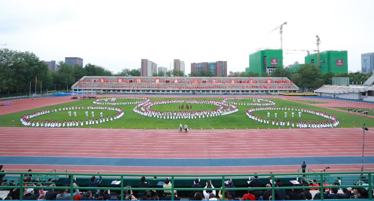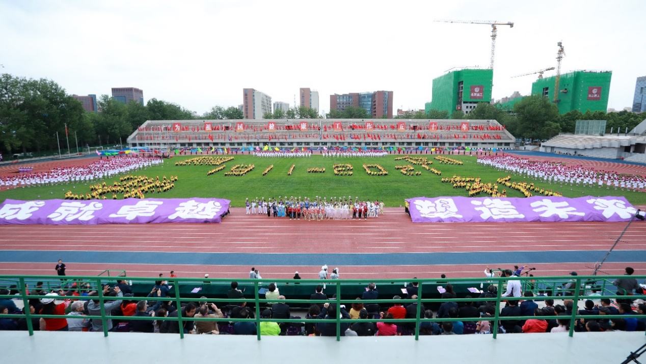 水木清华,欣欣向荣。1723名乐动平台本科学生、140名体育代表队及体育协会学生和100名飞行学员班学生进行了“清韵华章”团体操表演。
