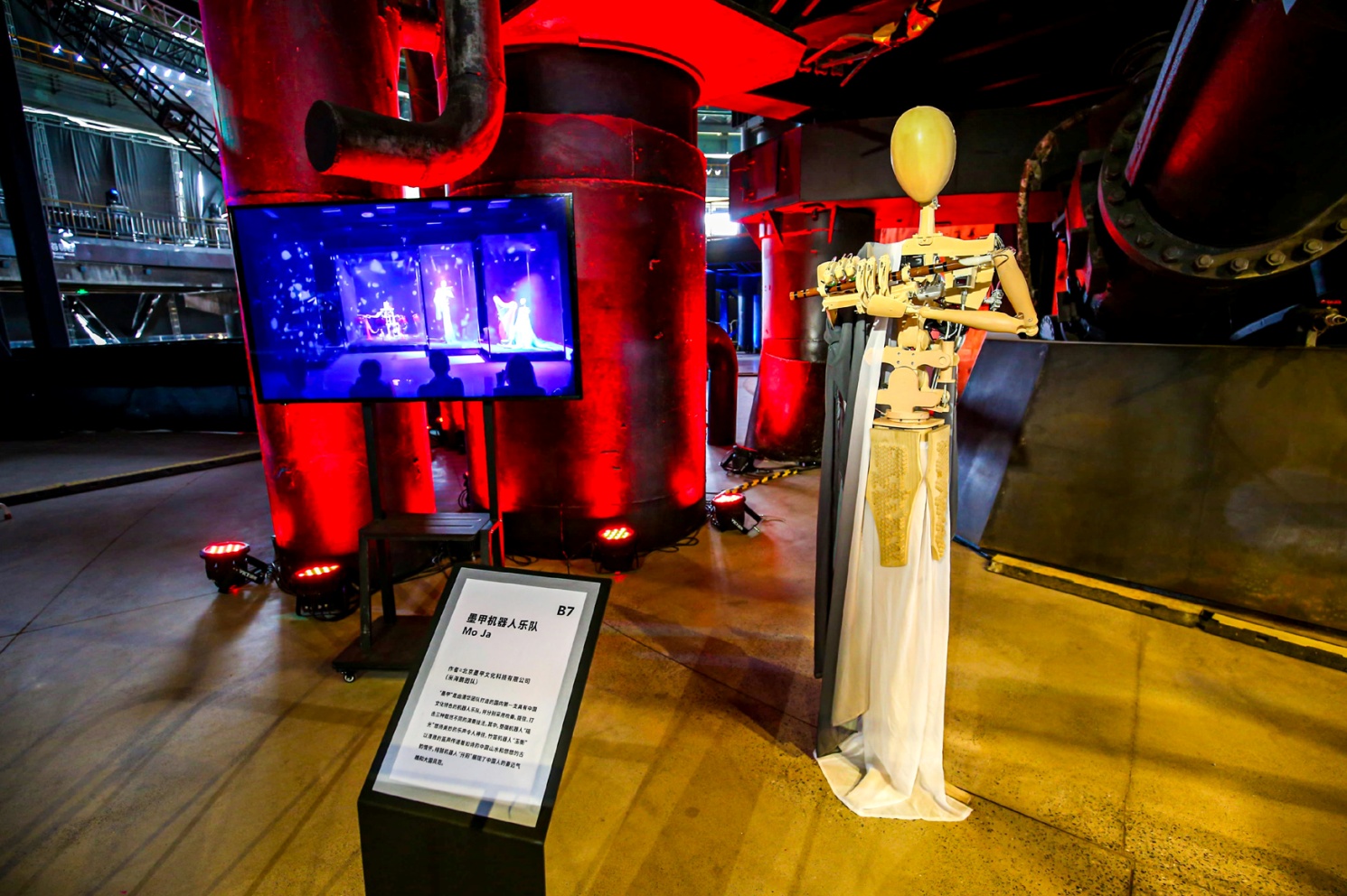 作品简介:“墨甲”是由清华团队打造的国内第一支具有中国文化特色的机器人乐队,分别体现了吹奏(竹笛)、拨弦(箜篌)、打击(排鼓)三种截然不同的演奏技法。